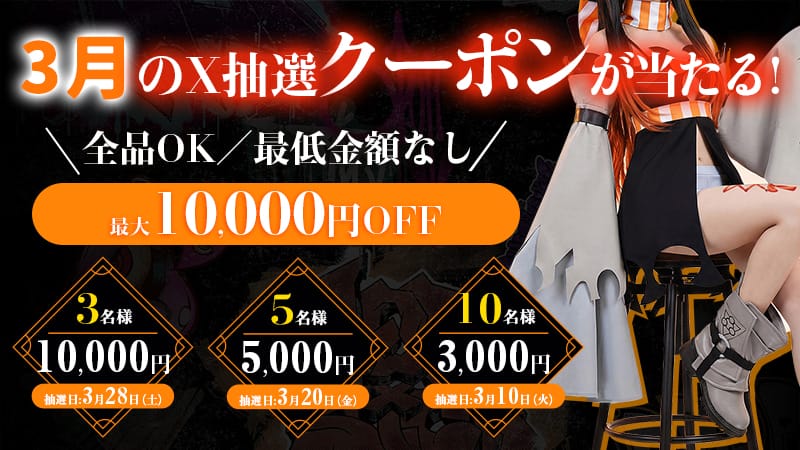 | 2025年3月29日 | 10,000円OFFクーポン | @nina_shikikan 様,@mi_sya_cosplay 様,@kxxx0412 様 |